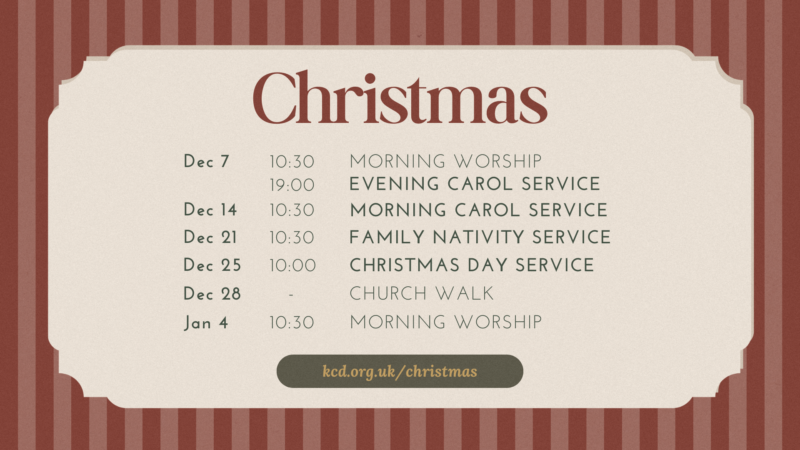 Our Morning Carol Service brings the whole church family together to sing carols, enjoy Christmassy activities for the children, and explore the wonder of the Christmas story from Luke’s gospel. We’ll also enjoy some festive refreshments after the service! Come and share the morning with friends and neighbours – everyone’s welcome!